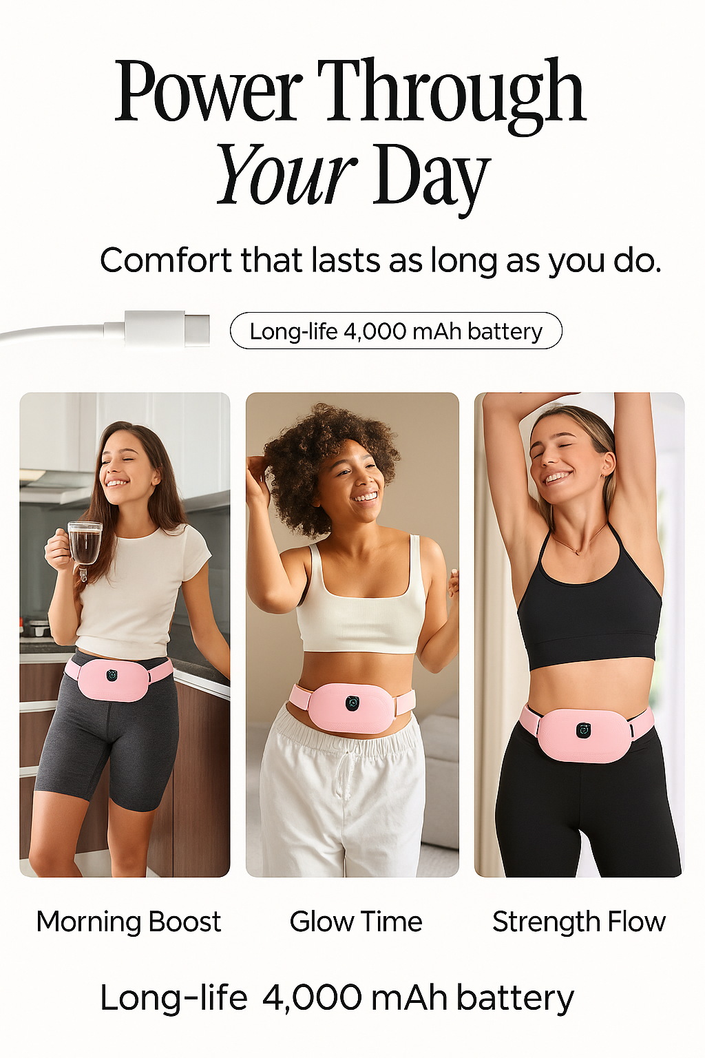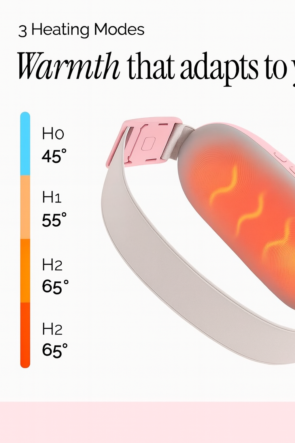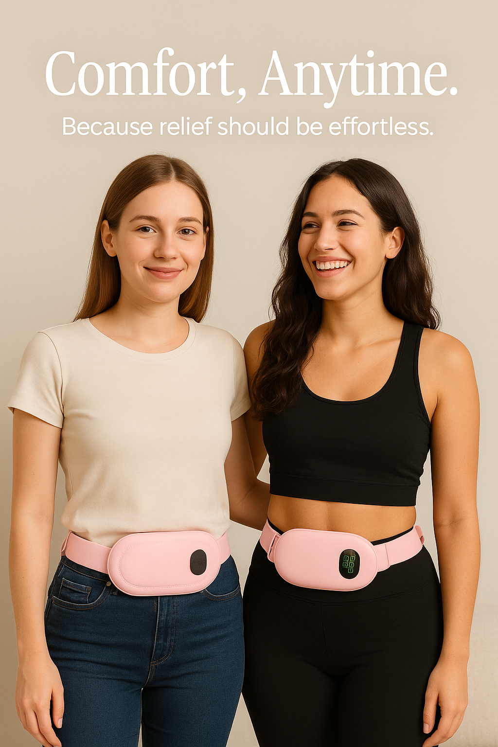 Meet TummyTune, your cozy companion during period days! Our soft, ergonomic heating pad wraps gently around your tummy, delivering targeted warmth that eases cramps and brings blissful relief.